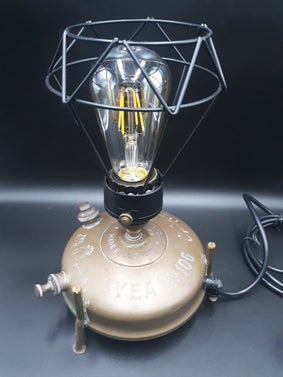 Oude carbid mijnlamp omgebouwd voor 230 V